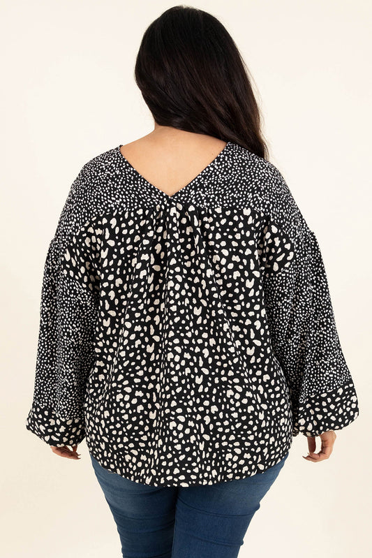 Plus Size Swiss Dot Ruffled Round Neck Blouse