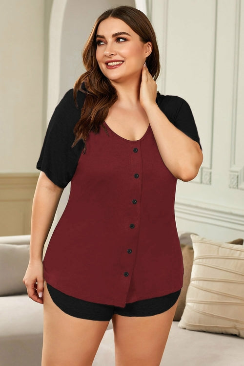 Color Block Short Sleeves Top & Shorts Plus Size Loungewear