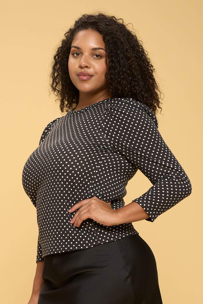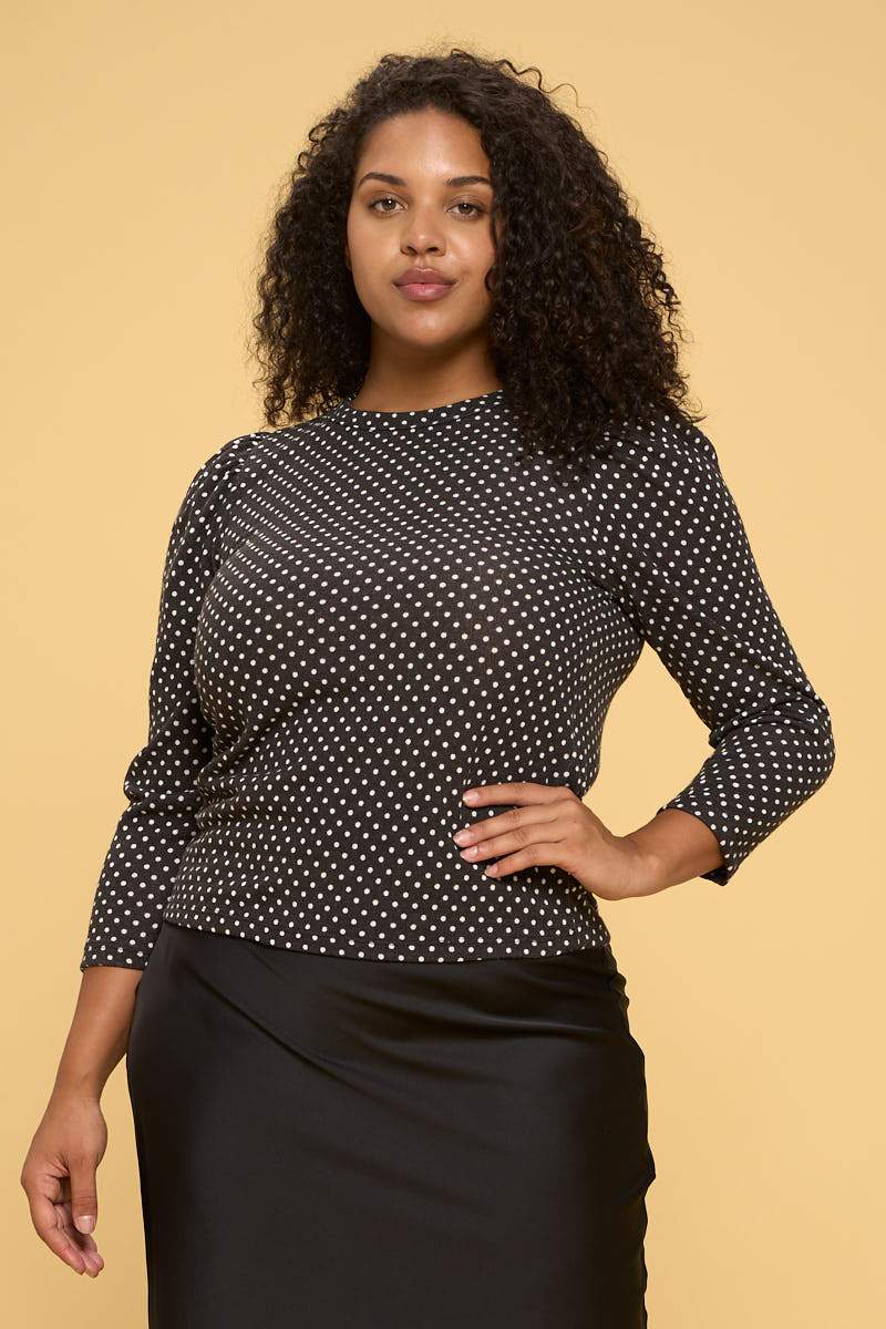 Refresh your wardrobe with the Daisy Polka Dot Knit Sweater. Crafted from a durable blend of 97% cotton and 3% spandex, this stylish piece features puff sleeves and a decorative polka dot pattern. Be stylish and chic this season.